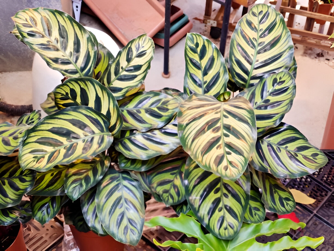 ✅ كالاتيا ماكويانا (Calathea makoyana) – تُعرف باسم نبات الطاووس، وتتميز بأوراق بيضاوية ذات أنماط رائعة.