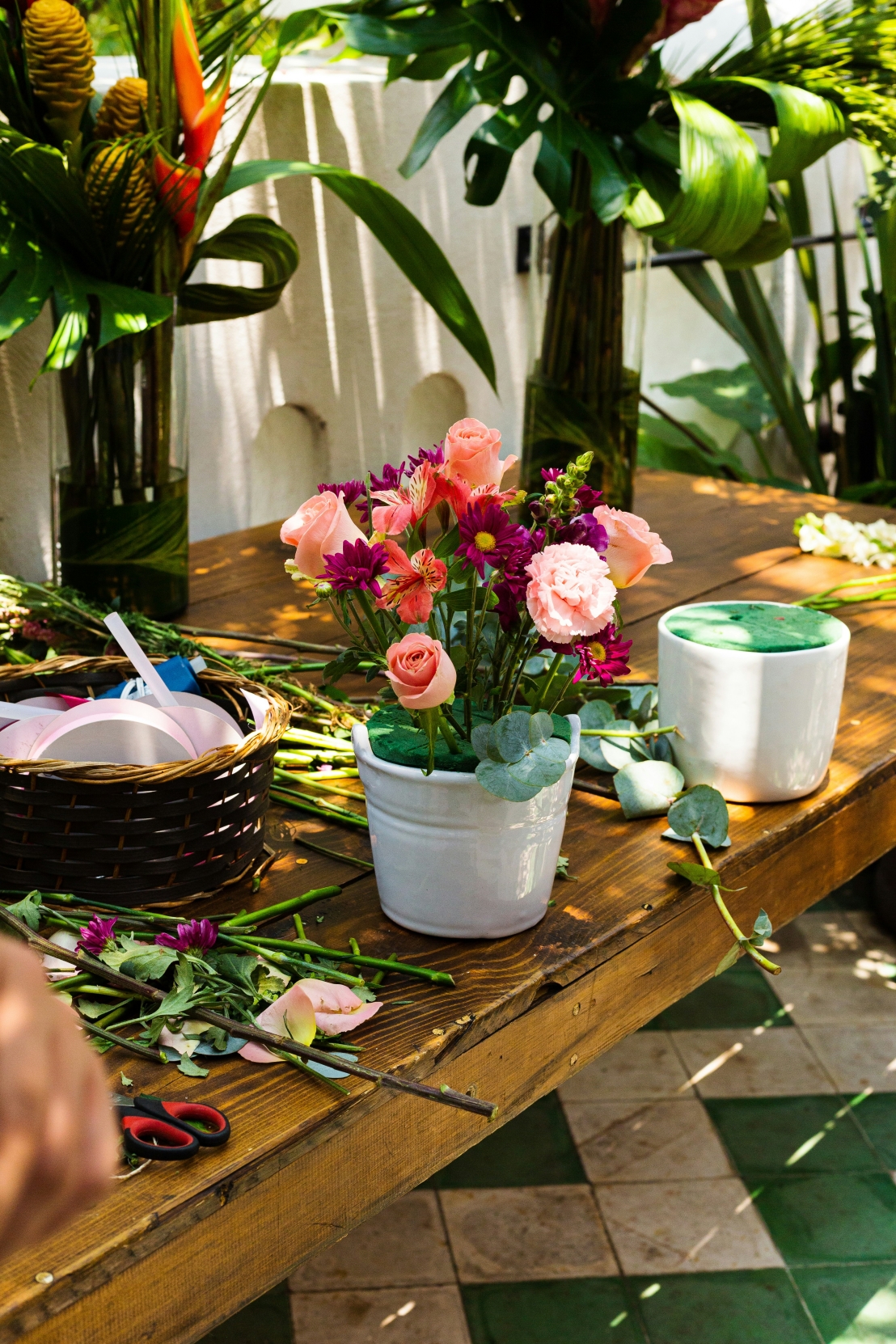 ? 1. ترتيبات الزهور على الطاولات: